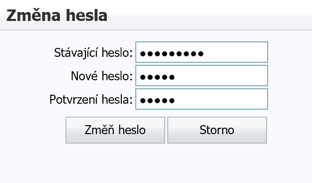 Je nutné zadat stávající heslo, nové heslo a nové heslo ještě jednou pro kontrolu.